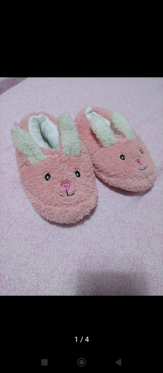 Kız çocukları için pastel pembe renkte, yumuşak peluş kumaştan yapılmış, kulaklarında kürk detaylı ve nakışlı tavşan yüzü bulunan sıcak terlikler.