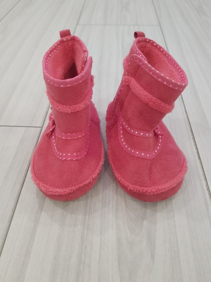 Kız çocukları için pembe renkli, yumuşak ve sıcak polar malzemeden yapılmış botlar. Kolay kapanan cırt cırtlı bantları vardır ve sade, desensiz tasarıma sahiptir. Rahat ve renkli.