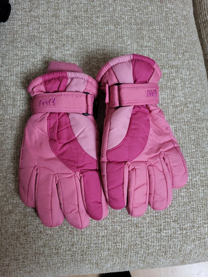 Kız çocukları için pastel pembe renkte, yumuşak ve sıcak kumaştan yapılmış, Velcro bantlı rahat eldivenler.