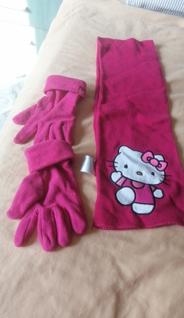 Renkli nakışlı Hello Kitty desenli, örme pembe polar eldiven ve atkı seti, sokak stili için uygun.