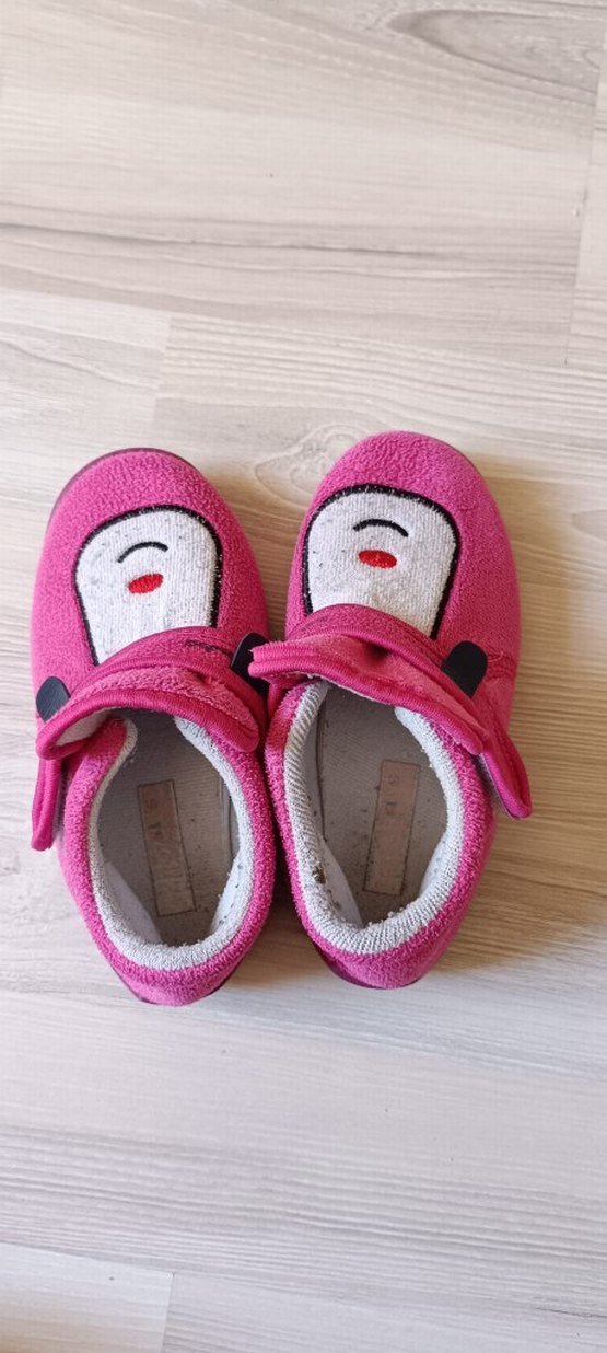 Kız çocukları için pembe polar ev terliği, renkli tasarım ve cırt cırtlı kapama özelliğine sahiptir. İç mekan için rahat ve sıcaktır. Numara 32 olarak işaretlenmiştir.