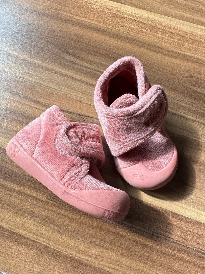 Yumuşak polar kumaştan yapılmış, velcro bantlı pembe kız çocuk ev terliği. Düz, normcore tarzda ve pastel renkte, ev içinde rahatlık sağlar.
