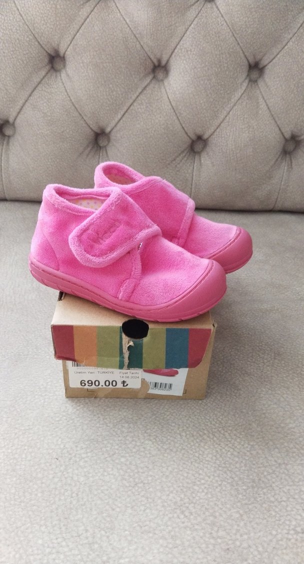 Kız çocukları için düz pembe polar ev terliği, yumuşak malzeme ve cırt cırtlı kapanışa sahiptir. Pastel ton ve sade tasarımı ile rahat ve kullanışlıdır. Fiyat: 690.00. bilgileri bu şekilde sadece bir kez giyildi hiçbir sorunu yok giyildigi için yıkayıp kaldırdım isimliginde silinme mevcut yıkandığı için. kutulu gönderim sağlanacak