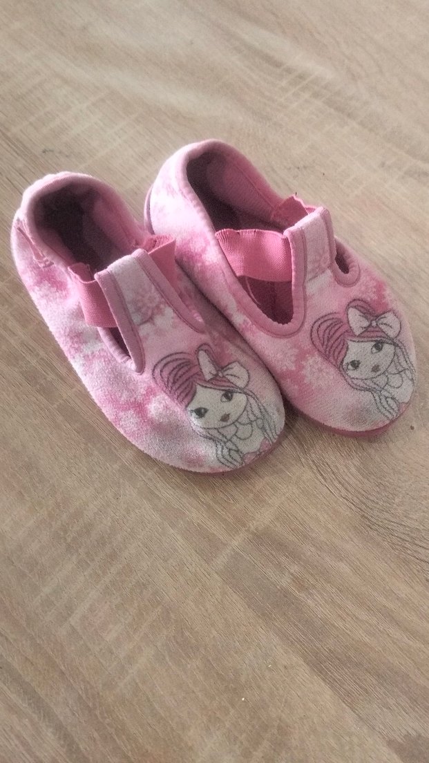 Kız çocukları için pembe polar kumaştan, baskılı desenli ve kolay giyilebilen cırt cırtlı ev terliği. 26 numara deformesi yoktur