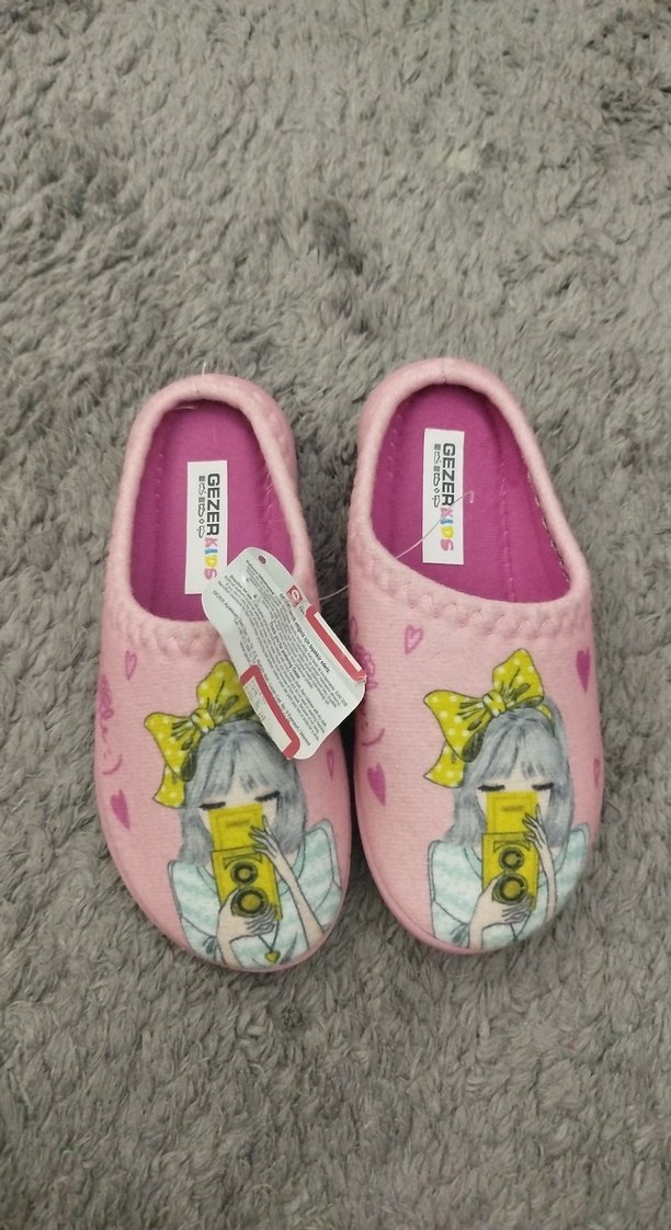 Yumuşak tüylü kumaştan yapılmış, baskılı pop kültür desenli pembe ev terliği. Marka: GEZERKIOS.