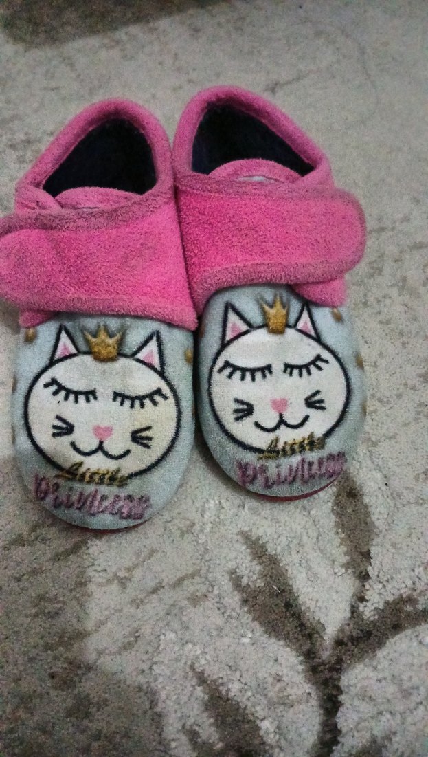 Yumuşak ve sıcak kumaştan, prenses kedi desenli ve cırt cırtlı pembe kız çocuk terliği.