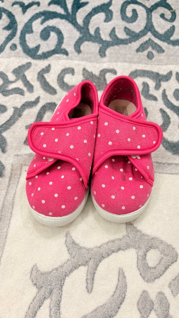 Pembe renkli, renkli puantiyeli, kolay giyilen cırtcırtlı bantlı terlik. Kauçuk tabanlı, sıcak tutan kumaştan, sokak stili için uygundur. Yıkanınca üzerindeki leke çıkar.Kızım rahatça giyip çıkartabiliyordu.Kullanımı çok kolay