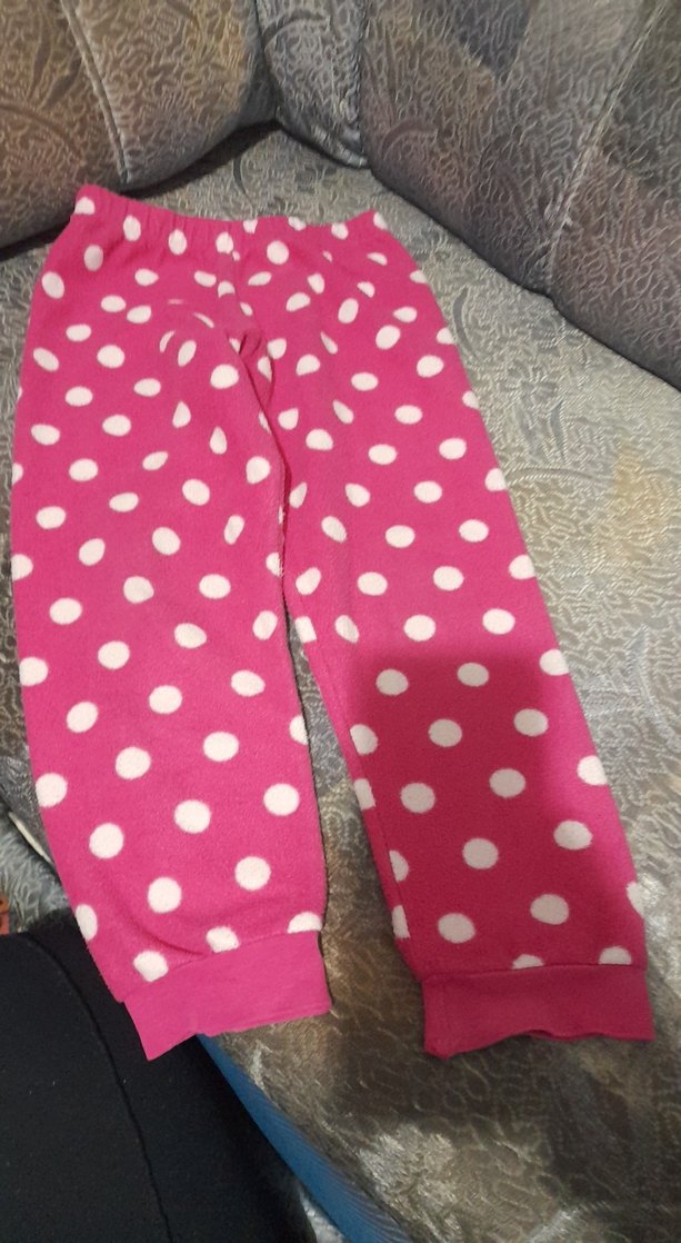 Pembe puantiyeli, triko dokulu ve yumuşak, sıcak kumaştan yapılmış, vücuda oturan kız çocuk taytı. Rahat sokak stili için uygundur.