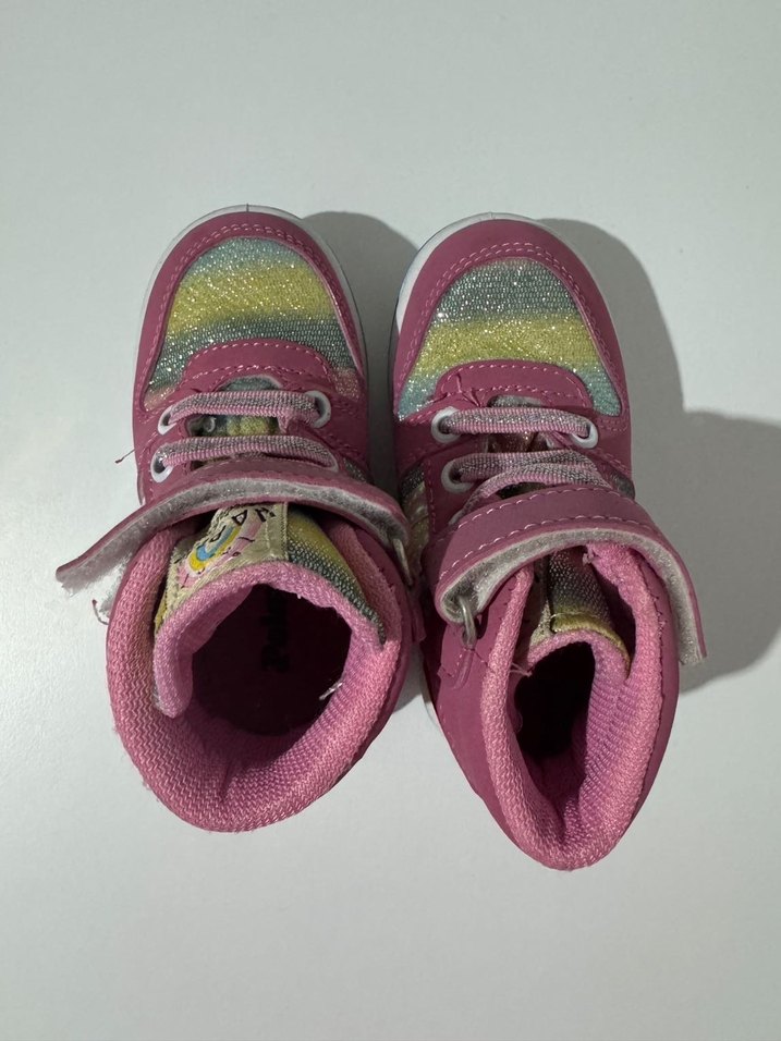 Renkli tie-dye desenli, pembe detaylı kız çocuk spor ayakkabısıdır. Cırt cırtlı bant ve dayanıklı lastik tabana sahiptir.
