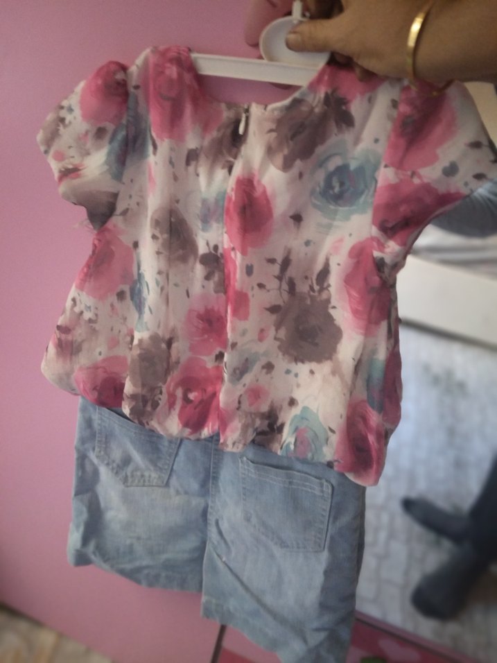 Pembe tonlarda tie-dye desenli, kısa kollu, yuvarlak yakalı ve fırfırlı kız çocuk elbisesi. Rahat kesim ve sentetik yumuşak kumaştan üretilmiştir. alt kot kumastir boydan elbise