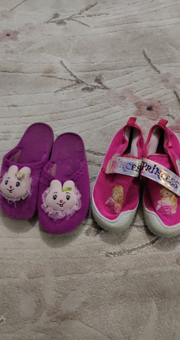 Kız çocuklar için yumuşak kürk dokulu, renkli desenli pembe terlikler. Bir çiftinde 'PRiNCESS' yazılı cırt cırtlı bant bulunur. Rahat ve günlük kullanıma uygundur. Panduf 29 terlik 30 ikisi satılık birlikte