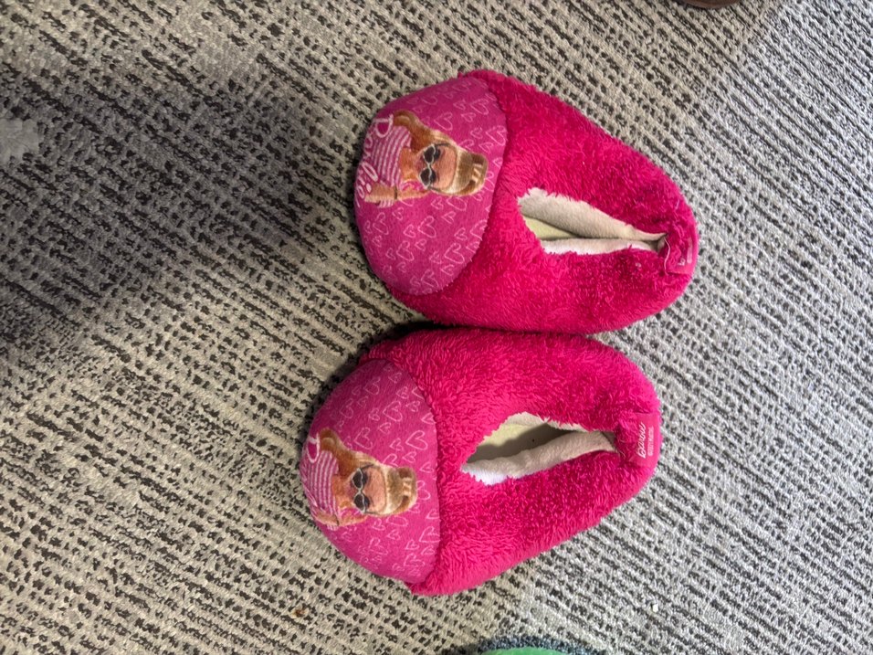 Kız çocukları için yumuşak ve sıcak fleece kumaştan, renkli nakışlı pop kültür desenli ve kürk detaylı terlikler.