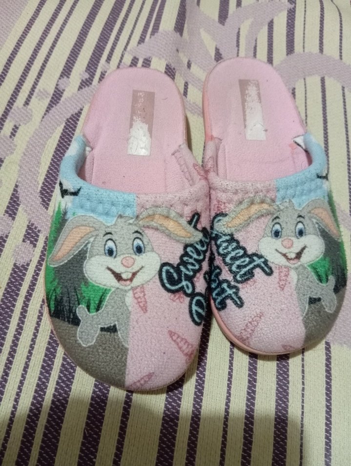 Pastel pembe renkli, yumuşak peluş astarlı kız çocuk terlikleri. Sevimli tavşan baskılı, rahat ve şık tasarım.