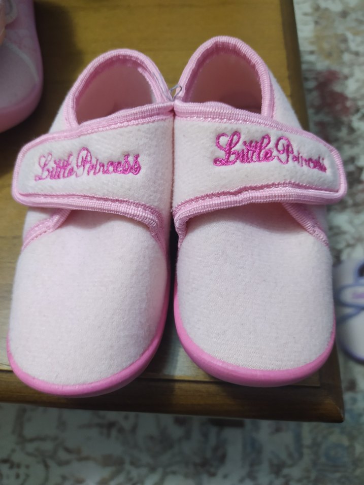 Yumuşak polar kumaştan yapılmış, cırt cırtlı ve 'Little Princess' baskılı pembe kız çocuk sıcak ev terliği.
