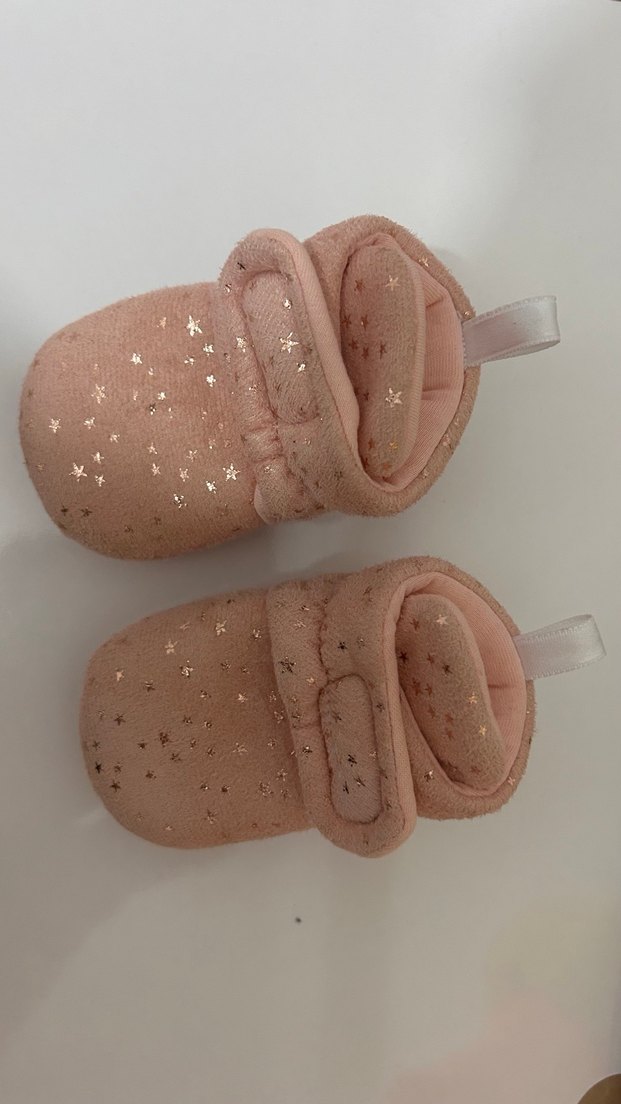 Yumuşak kumaşlı, cırt cırtlı pembe kız çocuk sıcak ev terliği. Desensiz, hafif yıldız detaylı, sokak stili için uygun.