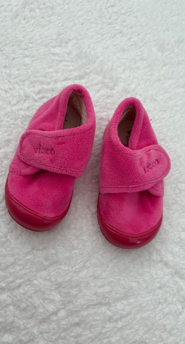 Kız çocukları için yumuşak kumaşlı, cırt cırtlı pembe sıcak terlikler. Günlük kullanım için sade ve renkli tasarım.