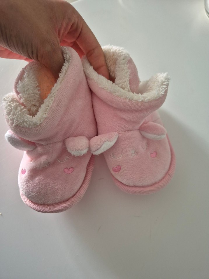 Kız çocukları için pastel pembe renkte, içi yumuşak kürk detaylı sıcak terlikler. Düz ve sade normcore tarzda, rahat kullanıma uygun.