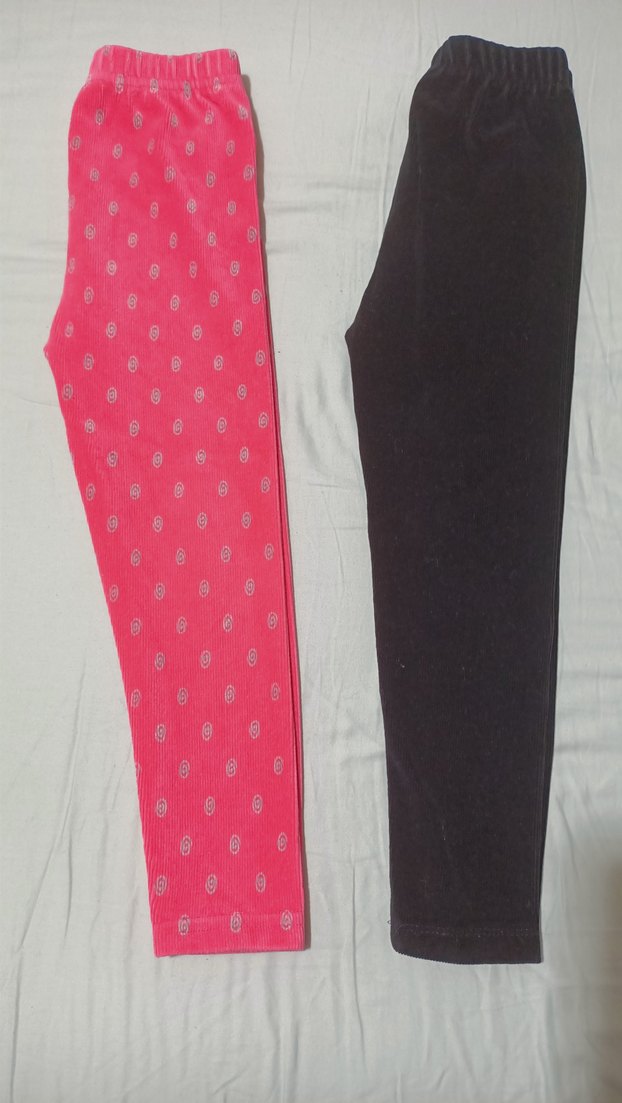 Kız Çocuk Pembe-siyah Elastik Kadife Taytlar