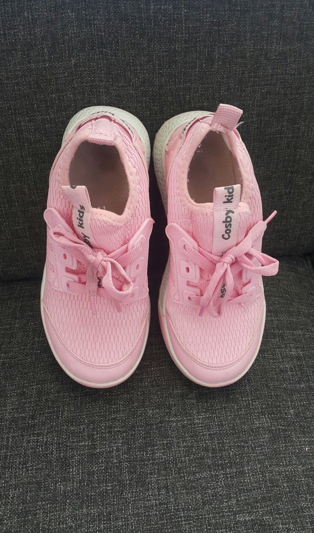 Pembe renkte, bağcıklı kız çocuk sneakers. Kauçuk malzemeden, pastel tonlarda, günlük rahat sokak stili için uygun.