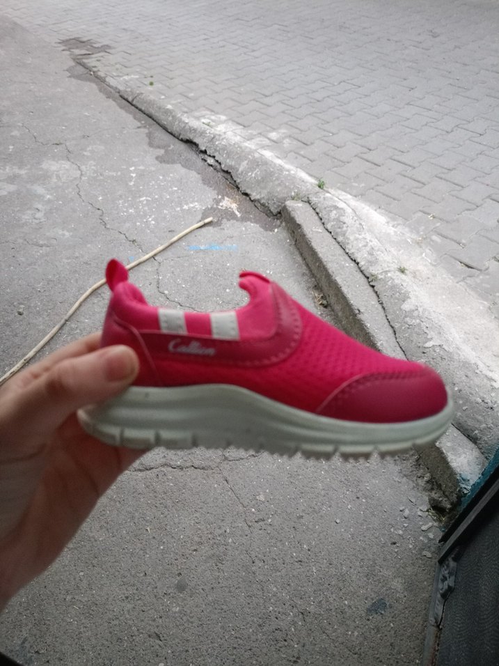 Pembe renkli, cırtcırtl kauçuk malzemeden üretilmiş kız çocuk spor ayakkabısı. Sokak stiline uygun, rahat ve kullanışlı.