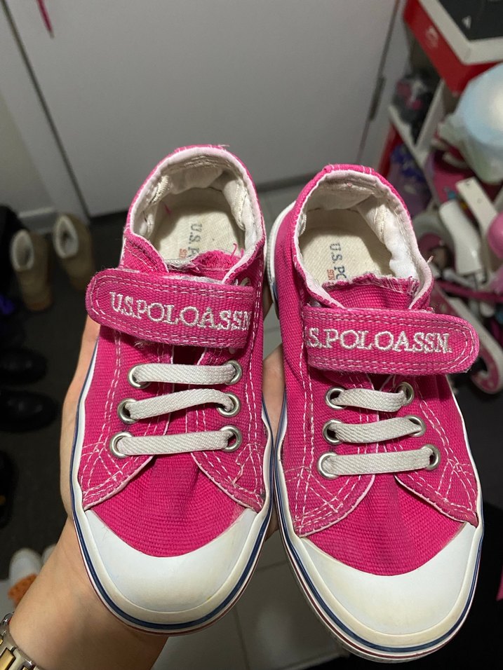 Canlı pembe renkli, baskılı desenli, kauçuk tabanlı ve Velcro bantlı U.S. Polo Assn. kız çocuk spor ayakkabısı 28 numara