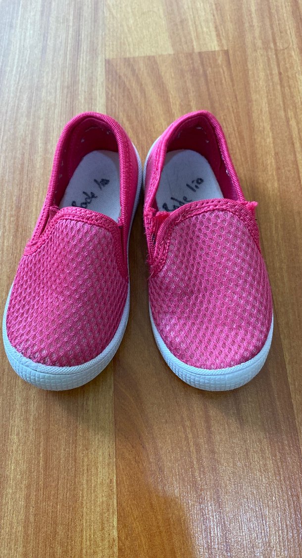 Kız çocukları için pembe renkli, lastikli spor ayakkabılar. Beyaz kauçuk taban ve renkli görünümle sokak stili sunar. Rahat ve kullanışlıdır.
