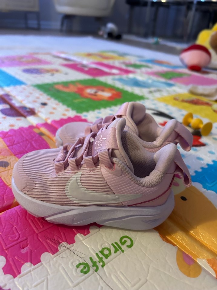 Pastel pembe renkte, bağcık detaylı, rahat kauçuk tabanlı kız çocuk spor ayakkabısı. 21 numara hiç giyilmedi.