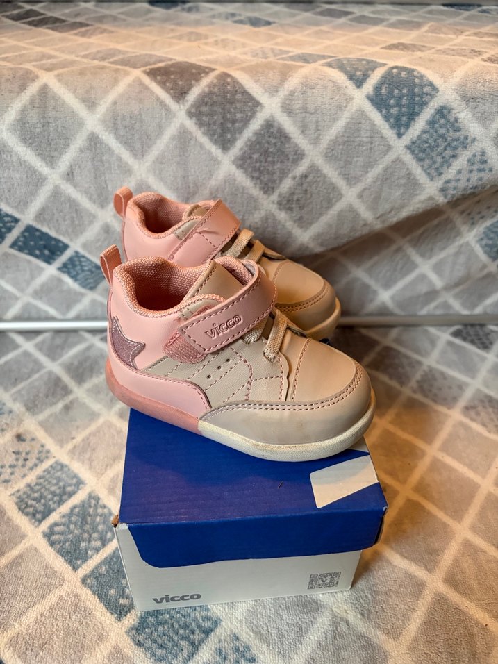 Pastel pembe kız çocuk spor ayakkabısı, Velcro kapamalı, baskılı detaylı ve kauçuk tabanlı, rahat sokak stili için uygun. 20 numara bir yada iki kez kullanıldı