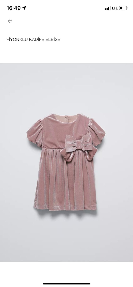 Kız çocukları için pembe süet kumaştan, kısa kollu ve yuvarlak yakalı bol kesim elbise. Fırfır ve büyük fiyonk detayıyla klasik ve yumuşak bir tarz sunar.
