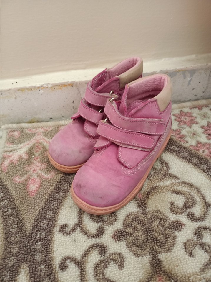 Kız çocuklar için pembe süet tokalı botlar, pastel tonlarda ve sade desensiz tasarımla rahat bir kullanım sunar.