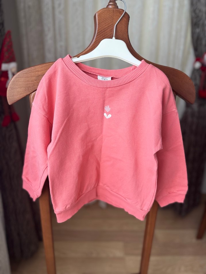 Pastel pembe renkli kız çocuk sweatshirt, bisiklet yaka ve uzun kolludur. Defacto marka 3-4 yaş