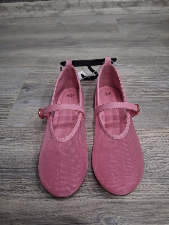 H&M Kız çocukları için pastel pembe renkte, tokalı bantlı ve kauçuk tabanlı babet ayakkabılar. Düz ve desensiz tasarıma sahiptir. iç etiketi 205