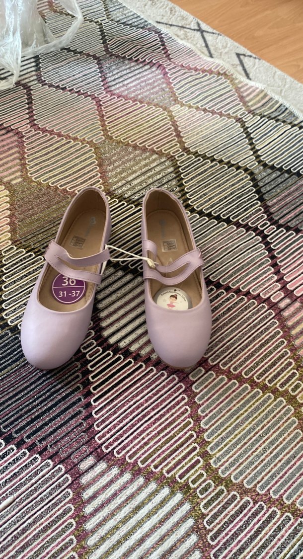 Pastel pembe tonlarda, tokalı kız çocuk babet ayakkabısı. Bağlamalı desenli ve 31-37, 36 numaralarda. Kauçuk malzemeden üretilmiştir. Sıfır ayakapı