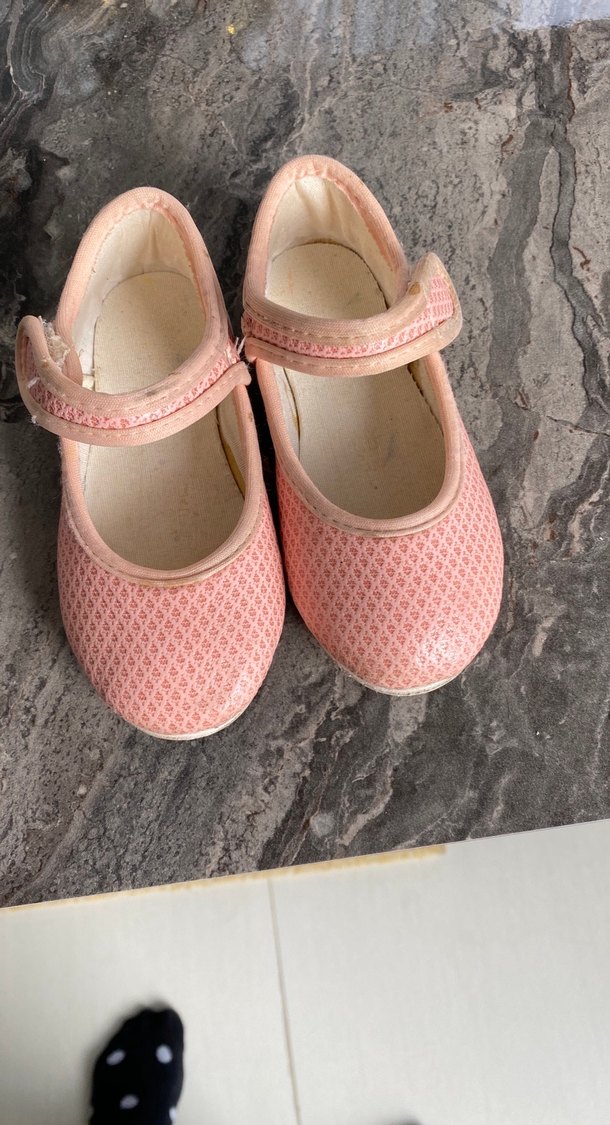 Pastel pembe renkli, tokalı kayışlı kız çocuk babet ayakkabılar. Kauçuk malzemeden üretilmiş, desensiz ve konvansiyonel tasarıma sahip.