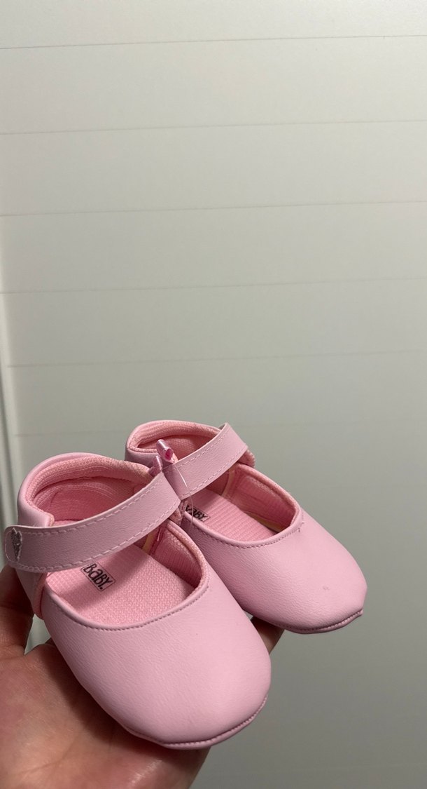 Pastel pembe tonlarında, tokalı kayışlı, yumuşak kauçuk malzemeden yapılmış kız çocuk babet ayakkabı. Düz ve desensiz tasarım. E bebek ürünü