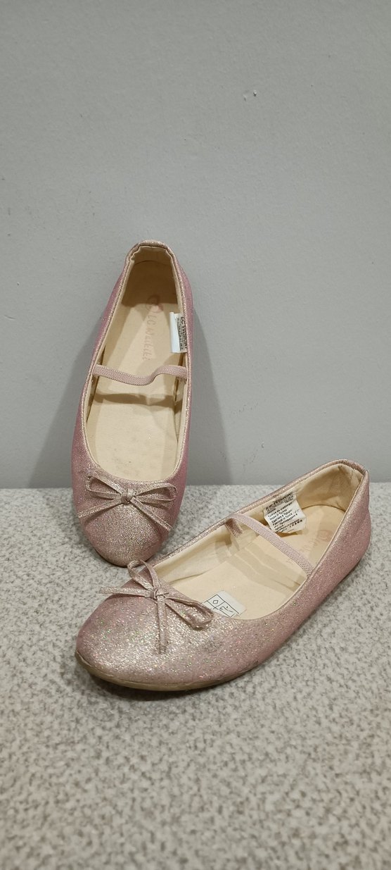 Pastel pembe renkte,simli, kız çocuk babet ayakkabı. 23 Nisan Gösterisinde giyildi.