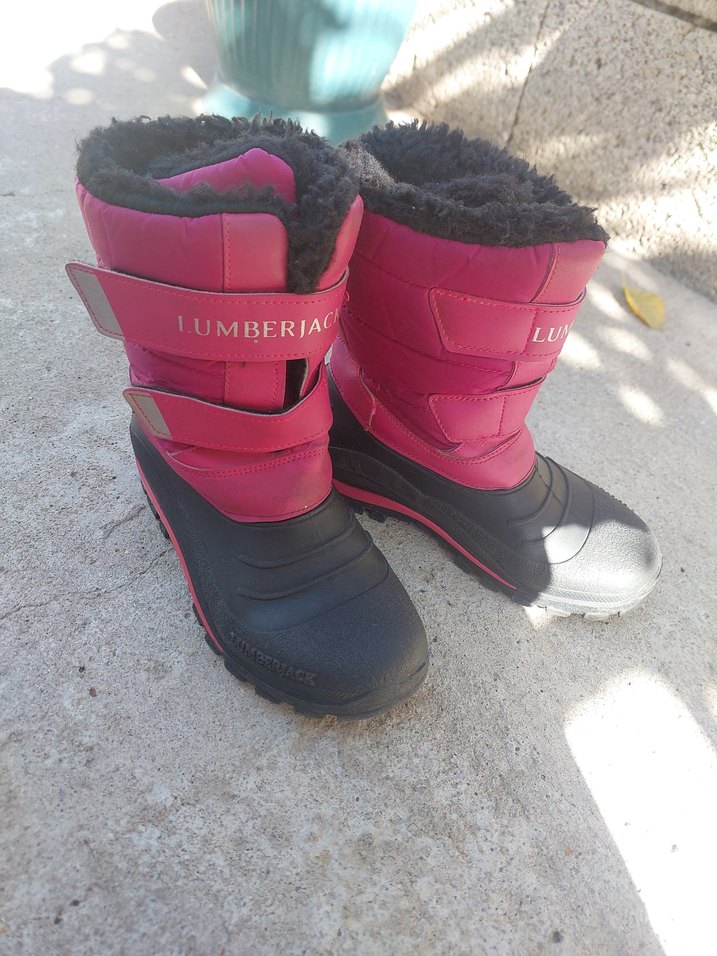 Koyu pembe kauçuk kız çocuk botları, tokalı kayışlara ve sıcak, yumuşak astara sahiptir. Desensiz, trend casual tarzda. "I.UMBERIAC" markalı.