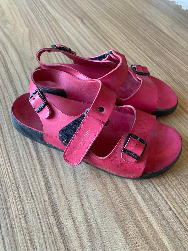 Kız çocukları için koyu pembe kauçuk sandaletler, ayarlanabilir tokalarla rahat kullanım sağlar. Desensiz sade tasarım. Ceyo marka ortopedik