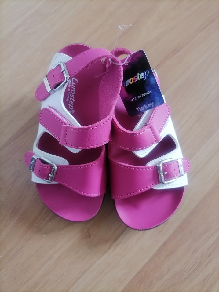 Full ortapedik tir. Kız çocukları için pembe kauçuk terlikler, tokalı kayışlara ve renkli, sokak modası tarzına sahiptir. Rahat ve günlük kullanıma uygun. Sıfır. Marka temsilidir