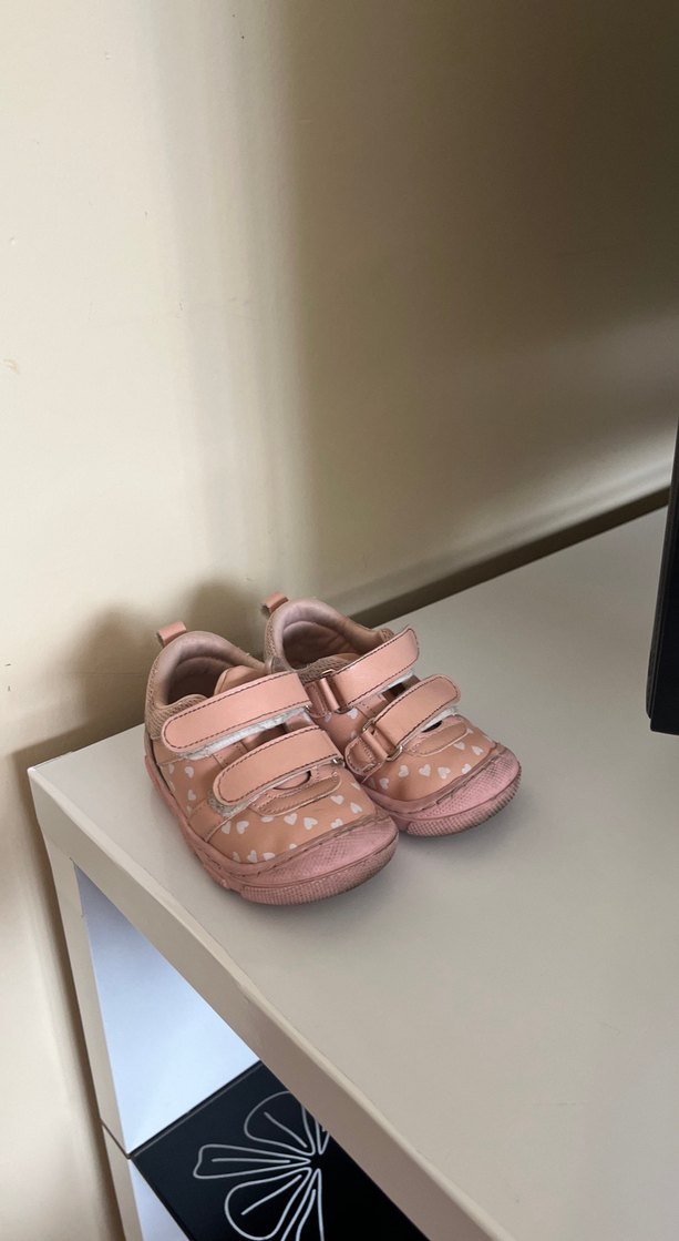 Pastel pembe kız çocuk spor ayakkabıları, tokalı tasarıma ve yumuşak kauçuk tabana sahiptir. Düz ve kolay bağlamalıdır.