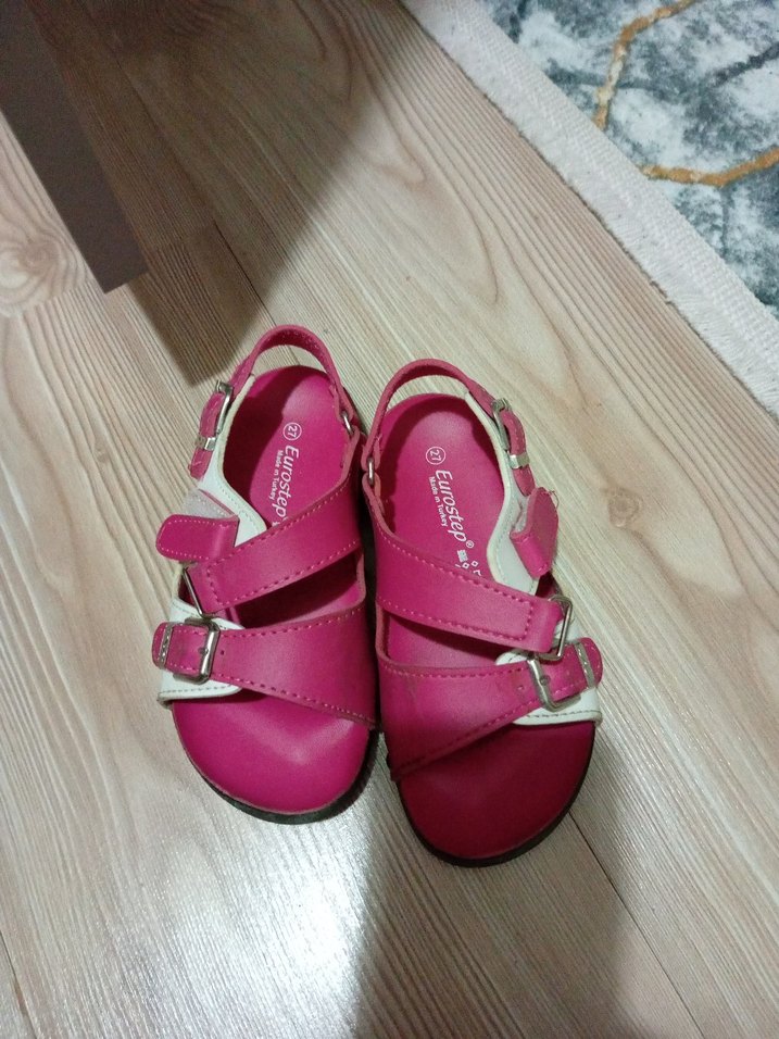 Ayarlanabilir tokalı, pembe renkli kız çocuk terliği. Rahat ve sade tasarımıyla günlük kullanıma uygundur.
