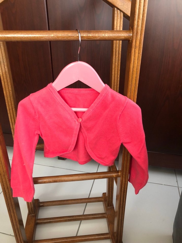 Pembe renkli, uzun kollu, yuvarlak yakalı ve triko dokulu kız çocuk bolerosu. Basic ve renkli tasarımıyla dikkat çeker.