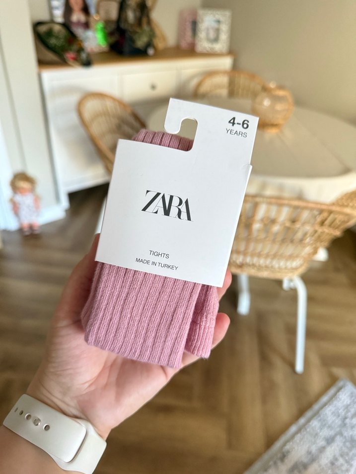 4-6 yaş kız çocukları için pastel pembe triko, fitilli dokulu külotlu çorap. Zara tarafından Türkiye'de üretilmiştir.