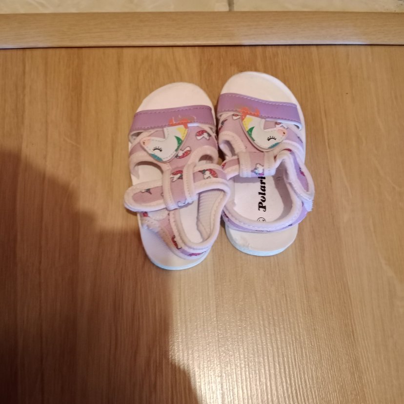 Pembe, pastel unicorn baskılı ve cırt cırtlı terlikler, kolay kullanım için kauçuk malzemeden üretilmiştir.
