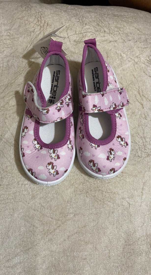 Kız Çocuk Pembe Unicorn Desenli Cırt Cırtlı Spor Ayakkabı 23