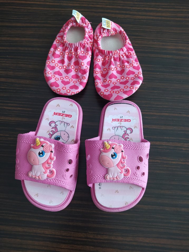 Kız Çocuk Pembe Unicorn Terlik ve deniz Ayakkabı Seti