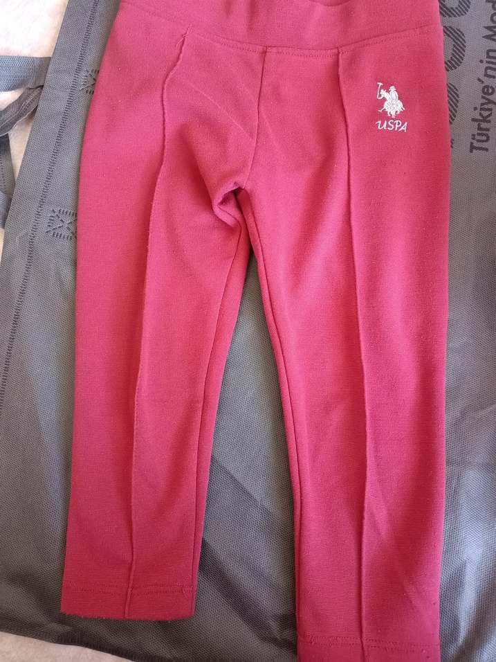 Kız çocukları için pembe, yumuşak ve sıcak kumaştan, elastik bel bantlı, düz desenli ve gri USPA logosu bulunan fitted tayt. 3/4 tayt yani biraz bilekten kısa model.
