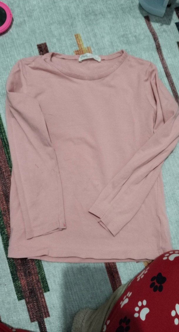 Pembe uzun kollu, yuvarlak yaka kız çocuk tişörtü. Rahat kesimi ve yumuşak sentetik kumaşı ile basic tarzda.
