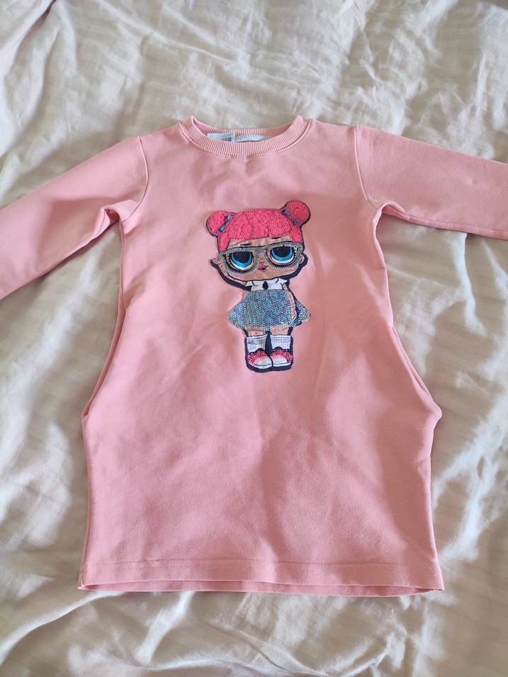Kız Çocuk Pembe Uzun Kollu Baskılı elbise