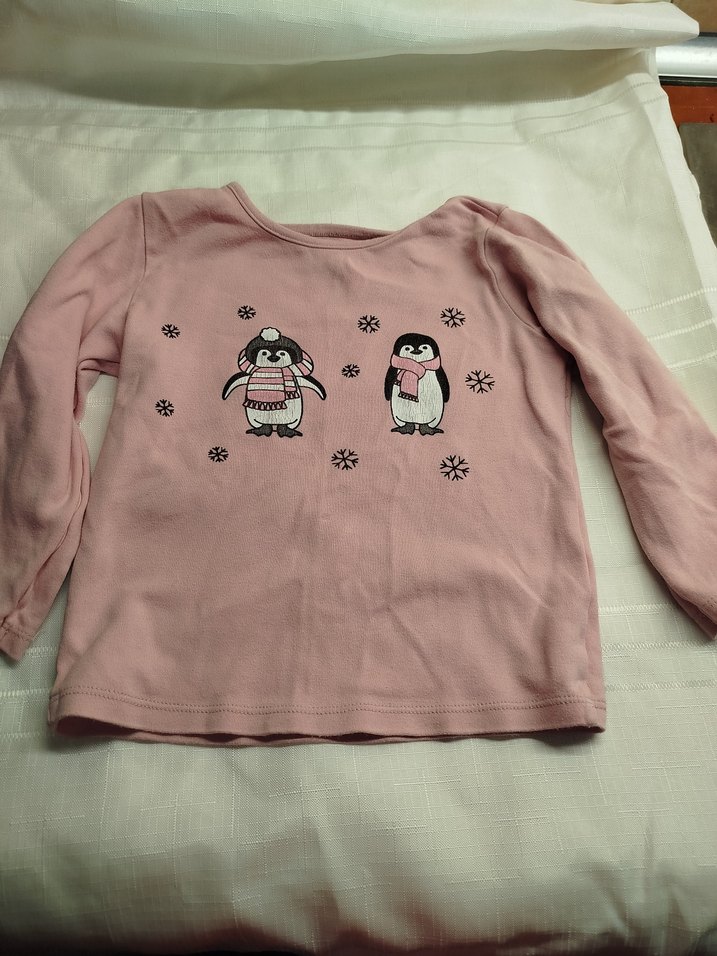 Pembe renkli, uzun kollu kız çocuk tişörtü, rahat kesim ve yuvarlak yaka. Yumuşak ve sıcak örgü kumaştan, penguen baskılıdır. ❄️